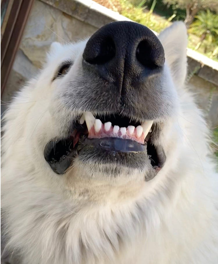 I am walking with a dog who likes to have an agenda of his own. He trots about 3 to 4 metres in front of me, off lead, slowly increasing the distance with every step. He would come if I called but I don’t mean to call him, I just want for him to pay more attention to where I want to be going without me having to ask him to perform specific behaviours. I abruptly stop. The dog notices, looks back in surprise, and I take a few swift steps into a different direction. The dog chases after me to catch up, open mouth, tongue out, eyes squinted. I want to say I joked with him: “Gotcha” or “So you think you know where we are going?” I teased him a bit by breaking his expectation that we were just going to trot on. I did, however, not mean to offer play (for instance, I was not opening a running game, in which I let the dog chase me and then turn to chase him in return, the point really was for him to follow me and not the other way around).